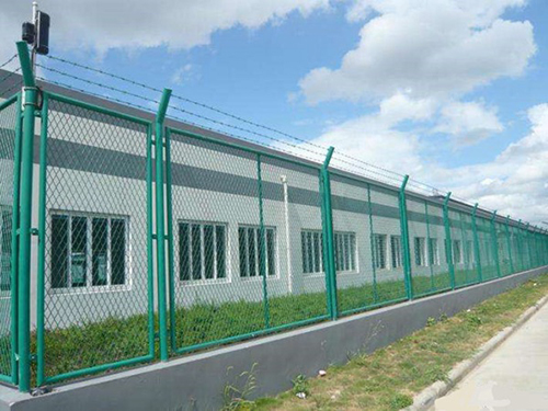 保税区围栏产品规格 1. 保税区围栏材质:Q 235低碳冷拔钢丝 2.保税区围栏丝经:5.0mm/ 5.0mm3.保税区围栏网孔:70mmX 70mm(斜方孔) 4.保税区围栏防腐处理:热浸塑 5.海关围网立柱:60X2.5mm6保税区围栏边框:20x40mm 7.保税区围栏最大尺寸2.m X 3m 多种颜色任选